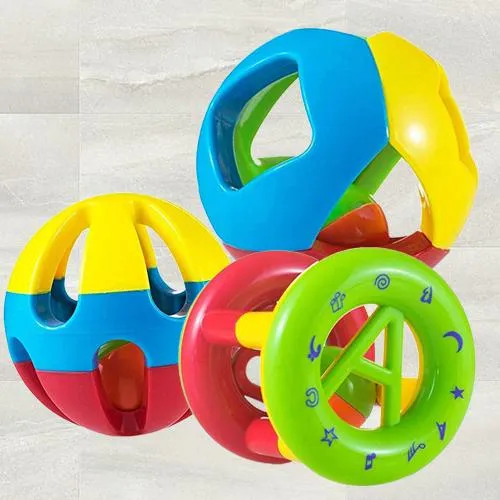 Surprise your special ones by sending this Amazing Rattle Set of 3 Shake and Grab Ball for Kids that will welcome into their hearts the breeze of love and joy. The details are as under:
