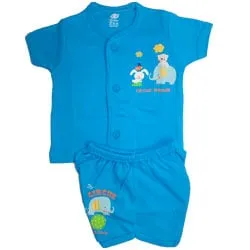 Deliver this comfortable Cotton Baby wear set of T shirt and shorts in blue color for Baby Boy of 0 month - 6 months