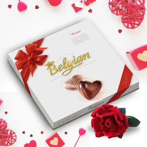 Order this Ecstatic Belgian Chocolates (200 gms) with a velvet Rose and make your dear ones happy.
