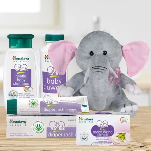 Treat your near and dear ones in an exclusive way with this Dashing Arrangement of Baby Care Products from Himalaya and make them feel very special. This is an extravagant arrangement of Gentle Baby Soap 75g, Gentle Baby Shampoo 40ml, Baby Powder 100g, Diaper Rash Cream 20g and a cute Elephant Teddy 12 inch.