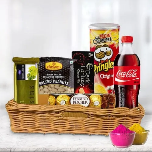Win the hearts of your dear ones by this Sumptuous Snacks Gift Hamper for Holi and show your fondness. This hamper features: