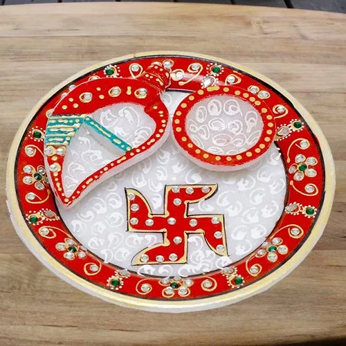 Feel great when you gift this Wonderful Designer Pooja Thali with Diya N Chopda and bring joy into the lives of the people you love. The details of the gift are: