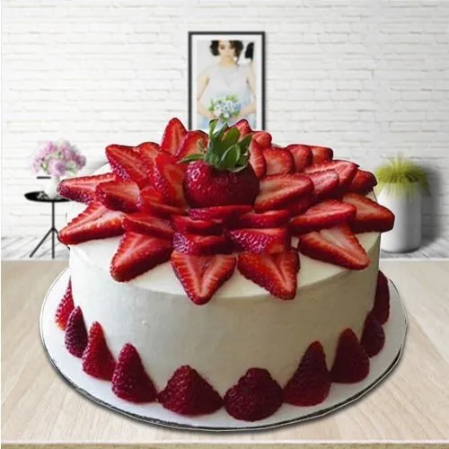 Choose this Finery-of-Fruits 2 Kg Strawberry Cake as a fitting dish to end the breakfast of a holiday morning and fulfill with sugary sensation the minds of your dear ones.