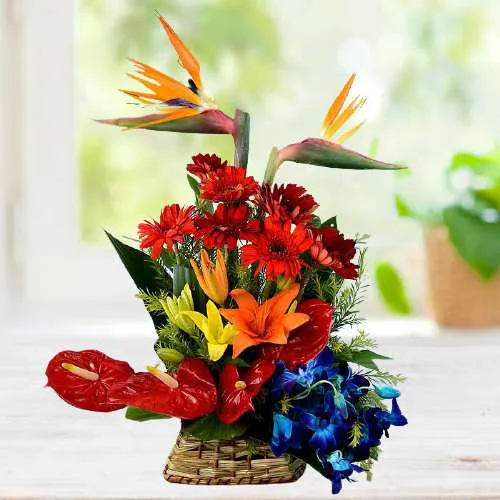 Send this nicely presented gift of Vibrant Surprise Exotic Blooms Basket and let someone know that you have feelings for him/her.
